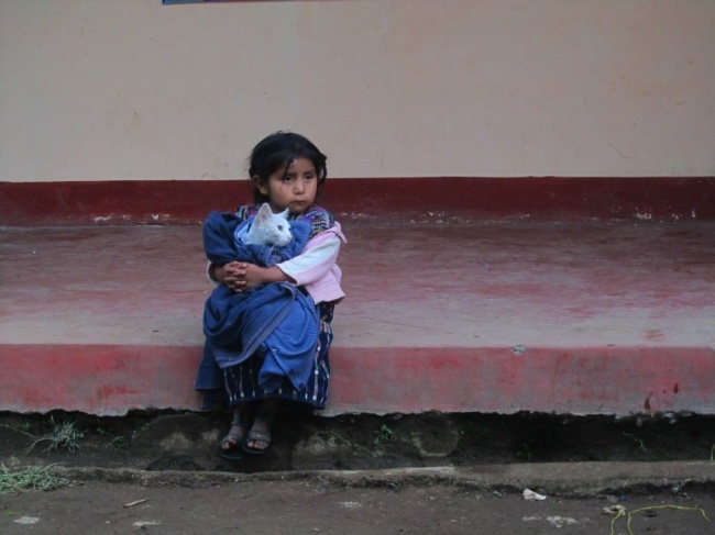 Любовь делает нас людьми. Девочка из Гватемалы обнимает свою кошку.