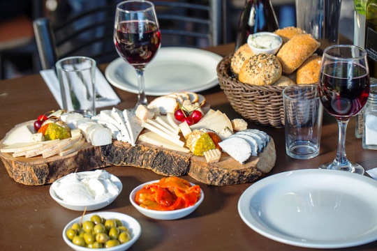 Завтрак в Турции. На столе вы обязательно увидите несколько разновидностей сыра, сливочное масло, оливки, яйца, нарезанные помидоры и огурцы, джем и мед, хлеб и приправленное специями мясо. Иногда могут быть поджаренные колбаски, яичница или менемен (омлет с помидорами или с овощами).