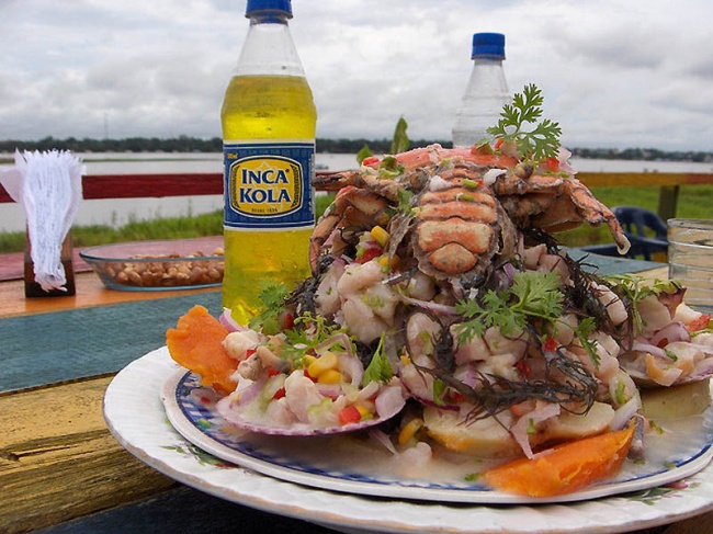 Завтрак в Перу. Севиче (самое популярное блюдо в любое время суток, будь то завтрак, обед или ужин) - это блюдо из свежей рыбы и морепродуктов, маринованных в соке лимона или лайма, и приправленных перцем чили.