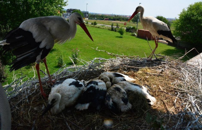 Удивительно, но за минувшие годы аисты вырастили более 40 птенцов. Летать их учит Клепетан. Повзрослев, они сопровождают его в путешествии в теплые края.
