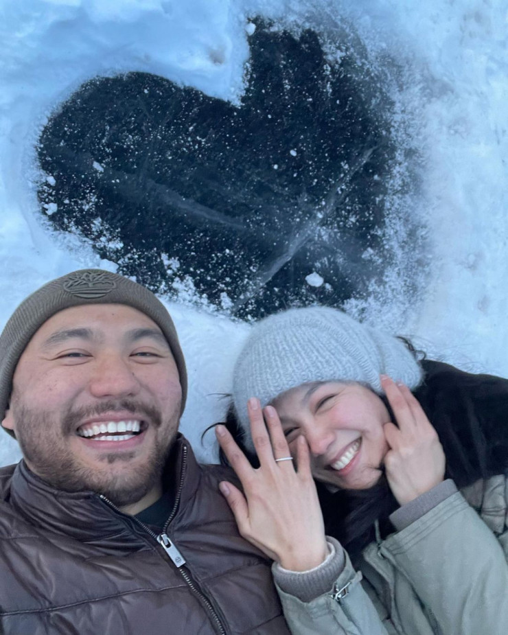Сама актриса данное событие не афишировала. Однако на своей странице в Instagram она опубликовала фото в этот же день на озере Кольсай в той же одежде, что и на фото с кольцом.