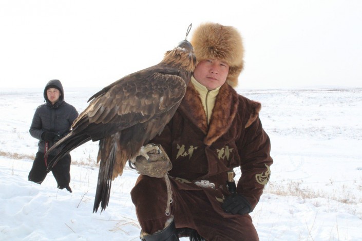 "Беркуты передаются нам из поколения в поколение. В нашей семье существует традиция с малых лет обучать детей охоте с беркутами. Лично я начинал потихоньку: гладил их, поднимал, а потом появилась какая-то неразрывная связь. Они очень злопамятные, поэтому мы никогда их не ругаем, всегда бережно относимся. Беркуты - очень сильные птицы. От них не сбежать зайцам, лисам, шакалам и волкам. Едят эти птицы только мясо", - говорит Аян.