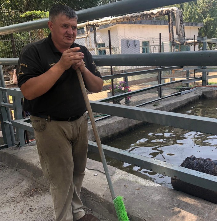 А Алина Чимирук - массажист. В зоопарке Алматы дважды в день массирует трех тапиров: взрослых и одного малыша. Также она проводит осмотр с термометром для измерения температуры.