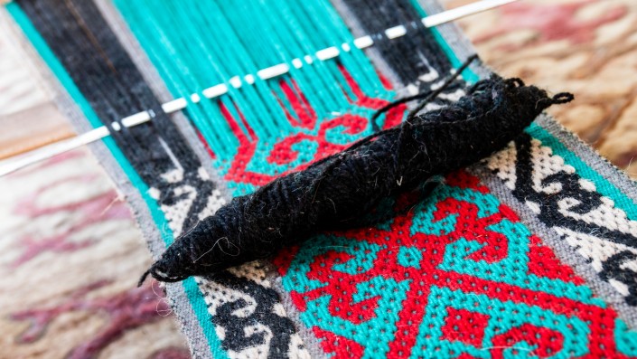 "На создание одного стандартного ковра длиной в три, шириной два метра уходит от трех до шести месяцев. Он вяжется на станке из натуральной шерсти. Я вывожу на коврах исключительно национальные мотивы: это орнаменты, изображения животных, наша природа. А своим детям я связала ковры с их именами", - говорит Булбул.