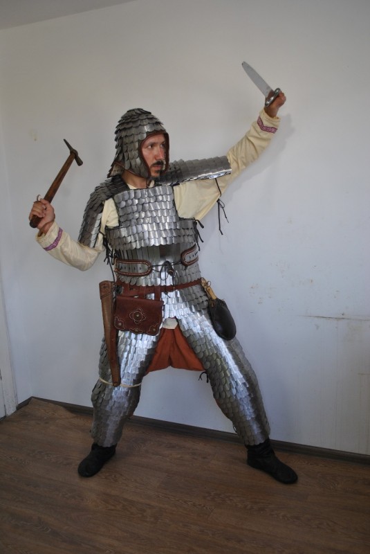 "Я понял, что у нас мало мастеров реконструкции. В этом сегменте мы отстаем от ближнего зарубежья на 20-30 лет, а от стран Запада - на 50-60 лет. Тогда я на себе решил испытать эту машину времени и стал создавать доспехи разных исторических эпох. К этому времени я уже умел работать с деревом, это помогло при изготовлении луков и стрел. Потом появилась необходимость работать с кожей, я освоил и этот метод. С супругой Асылгуль Байдаралиной научились шить правильную историческую одежду - шаровары, рубахи, халаты, головные уборы, обувь. Сейчас приходится уже осваивать и металл", - рассказывает Данияр.
