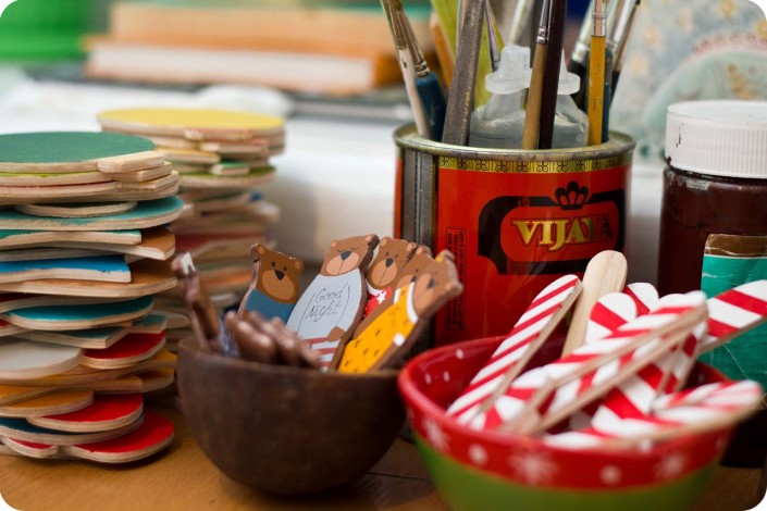 "Каждый сюжет просил развития. Мы брали новую доску - и вперед! Первая мысль расписывать дощечки пришла к нам в Киеве 7-8 лет назад, когда мы купили новогодние игрушки из дерева в маленькой лавочке на Бессарабской площади. Отсюда все и началось".