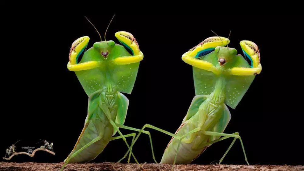 Немногим профессиональным фотографам удается запечатлеть во всей красе этих удивительных существ. И Уэй удачлив. Он рассказывает, что заинтересовался фотографированием дикой природы еще в детстве. Девять лет назад он начал заниматься макросъемкой. Тогда впервые в его объектив и попал богомол.