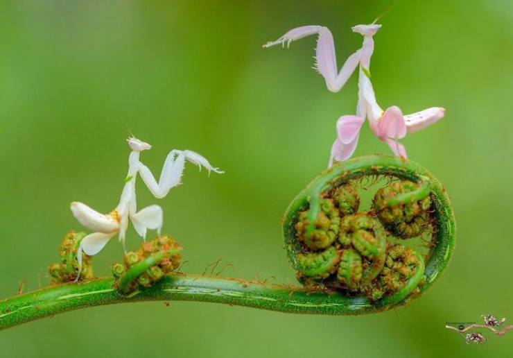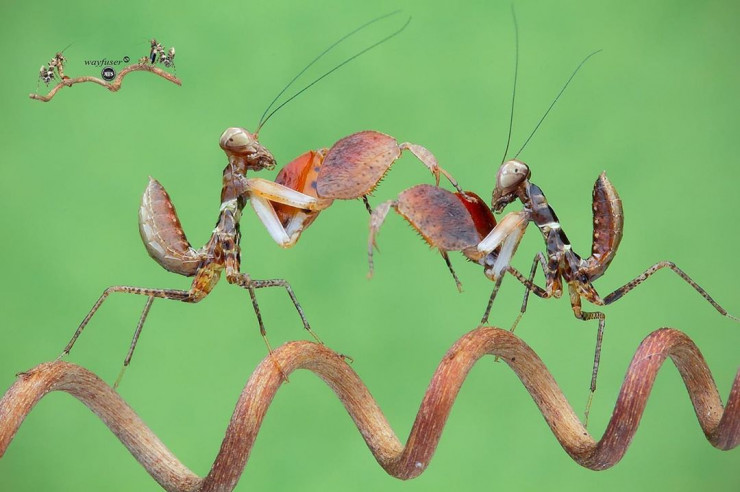 Фотограф Панг Уэй (Pang Way) из Малайзии любит делать снимки с близкого расстояния. Таким образом можно гораздо лучше разглядеть этих существ, которые в обычные дни не привлекли бы нашего внимания. При взгляде на эти кадры кажется, что богомолы не просто живут своей повседневной жизнью, а будто бы позируют фотографу.