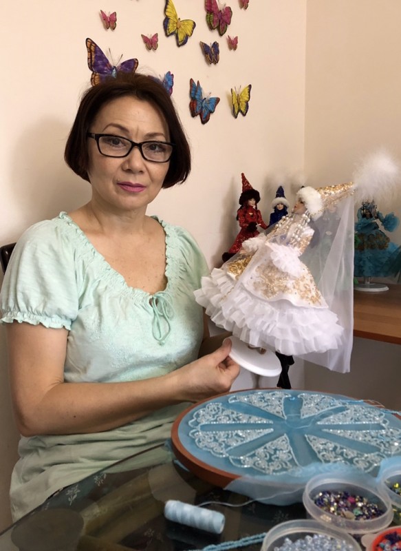 "У меня две дочери. Девочкам я часто покупала кукол. Словно возвращалась в детство, играла вместе с ними. Я всегда хотела им подарить куклу-казашку, но не находила такую. Дети быстро повзрослели. Шли годы, я стала бабушкой и опять пришла пора отправляться за покупками в магазин игрушек, где я с большим удовольствием изучала прилавки с куклами, чтобы купить подарок своей любимой внучке Элин. Чтобы она радовалась, купленную куклу я наряжала в красивые платья, сшитые своими руками, нашивала бисер, бусины и пайетки", - рассказывает умелица.