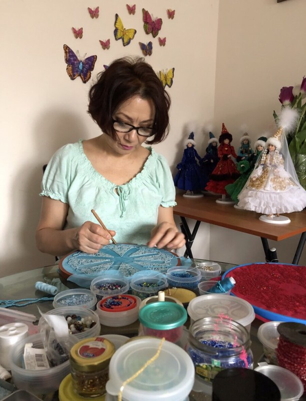 "Я очень люблю вышивку. Она вдохновила меня творить казахские орнаменты на кукольных платьях. В начале пути у меня не получалось, но я не сердилась и не бросала дело. Вышивать бисером научилась из Интернета, где есть вся полезная информация от обработки материала, построения выкроек до работы с люневильским крючком, разные способы и техники вышивки. Теперь каждый день я нахожу понемногу времени для своего хобби. Вышивая, слушаю аудиокниги. Предпочитаю работать в тишине. Так я успокаиваюсь в этом суетном мире. Никто не обращал внимание на мой труд, думая, что я просто трачу время на ненужные поделки.  А мне все нравилось. Кто имеет свое увлечение, тот поймет меня", - говорит собеседница.