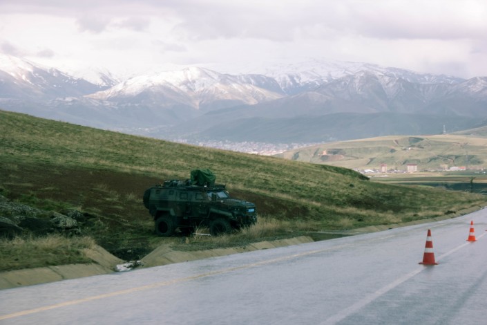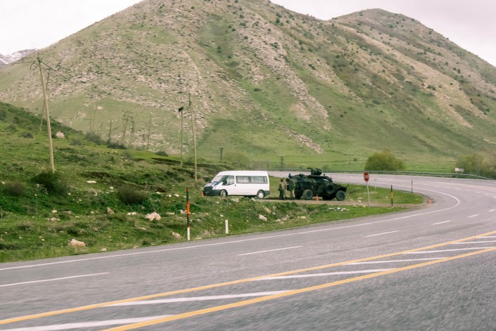 Их путь пролегал через долины, холмистую местность и... блокпосты. Да-да, ведь алматинцы проезжали по региону, граничащему с Сирией, где который год не прекращаются военные действия и откуда в Турцию стекаются беженцы. Вышки, колючая проволока, таблички "No photo". А еще много военной техники. И хорошо вооруженных людей, но о них чуть позже.