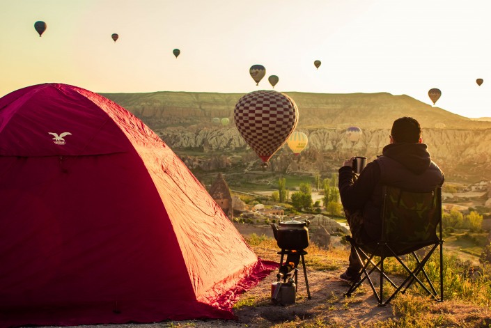 Алматинцы по максимуму придерживались принципа "все выключено" и в Каппадокии разместились в палатке. И отсутствие всяческих удобств нисколько не испортило впечатления от красочного зрелища ранним утром, когда в руках, к тому же, горячий кофе собственного приготовления.
