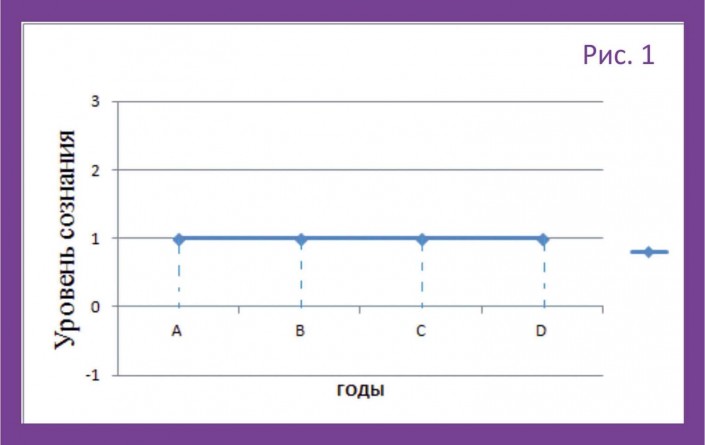 Анализ графика может, например, изменить представления человека о причинности. Взяв на себя ответственность за собственное восприятие действительности, человек может перейти от роли жертвы к пониманию того, что "над ним не властны внешние факторы". Не сами события, а реакция на них определяет, окажут ли они на жизнь позитивное или негативное влияние, превратившись в источник возможностей или стресса. На рисунке ниже показаны уровни сознания.