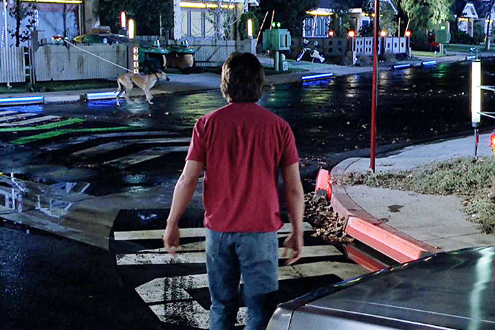 Собственно, в таких деталях вся сила и обаяние этого фильма, особенно для 1980-1990-х, когда будущее в кино чаще оборачивалось космосом, утопией или апокалиптическим кошмаром. Тут герои попадают в относительно дружелюбный городок, где, в сущности, все по-прежнему, изменились только мелочи и появилось больше классных гаджетов. Машины летают, но многие на них еще и ездят. Людей нарядили в форму работников коммунальных служб, но всегда найдется дедушка в кардигане и с тростью. Есть "умные" очки, но можно почитать газету. Новые технологии лишь сильнее подчеркивают вечное. Например, что отцов и детей иногда разделяет пропасть. Создателям фильма, правда, не пришло в голову, что в 2015 году болезненная страсть к гаджетам накроет скорее отцов, чем их детей.