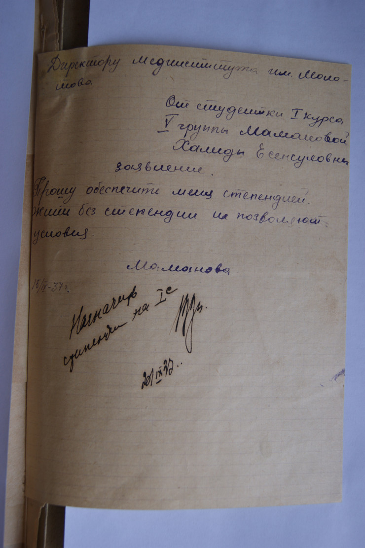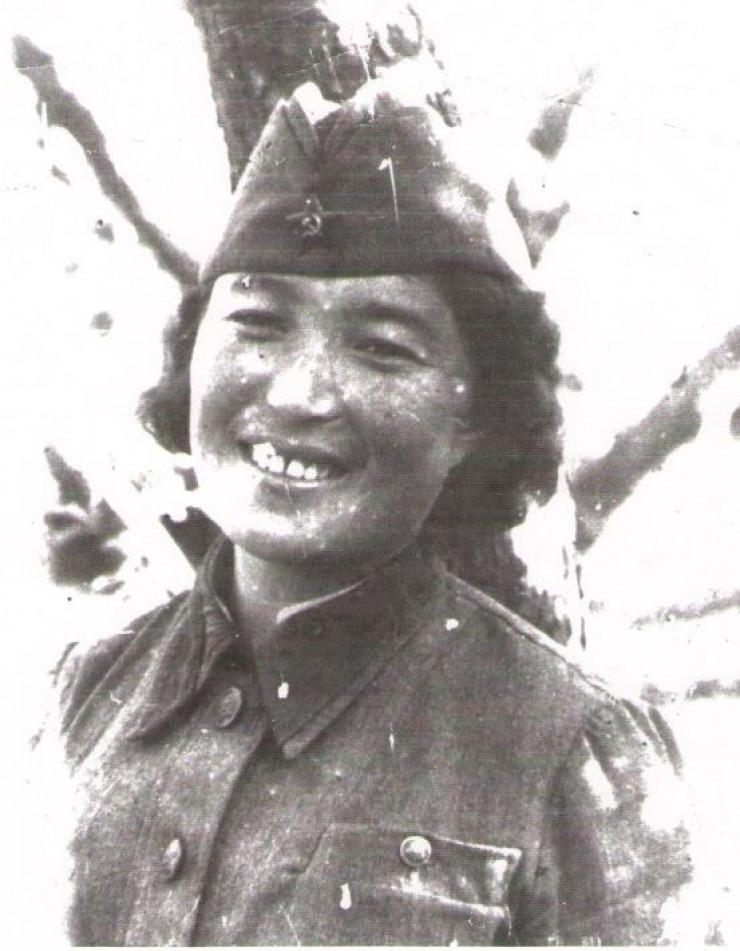 Ей должны были присвоить звание младшего лейтенанта, поскольку к тому времени у нее было высшее образование. Но из-за "байского" происхождения она не смогла попасть на фронт в качестве врача. Вместо этого ей дали лопату, поручив рыть окопы и копать могилы. Тогда девушка написала письмо Иосифу Сталину: "Если я враг народа, отправьте меня в штрафбат. Если останусь жива, то снимите все обвинения с меня и моих родственников". После этого письма ей удалось добиться отправки на фронт лично по приказу генералиссимуса.