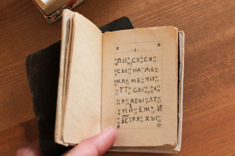 А эту книжечку с тайным шрифтом папа писал в 10-11 лет.
