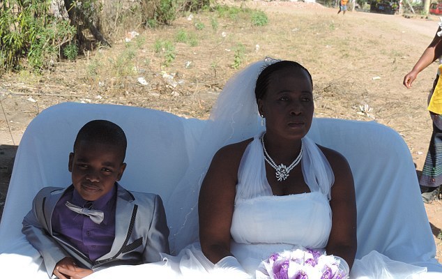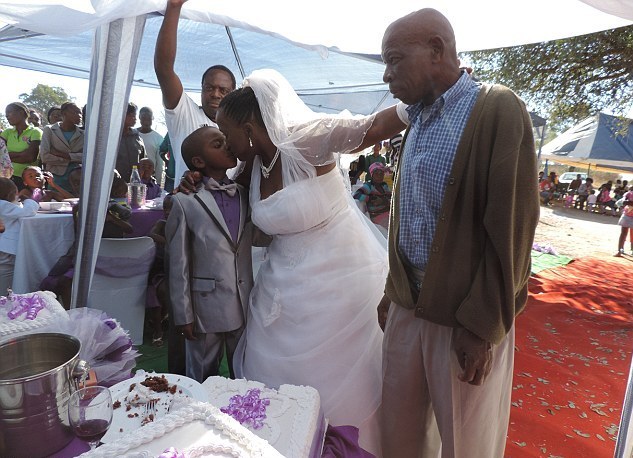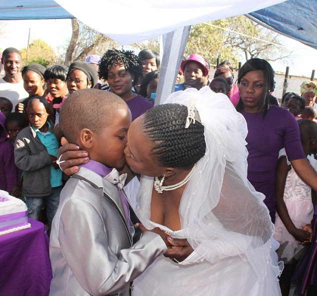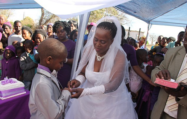 Необычную свадьбу сыграли на днях в ЮАР. Девятилетний мальчик по имени Санель Масилела женился на 62-летней Хелен Шабангу, у которой пятеро детей и законный муж. Для них это вторая по счету свадьба - первая состоялась в прошлом году.