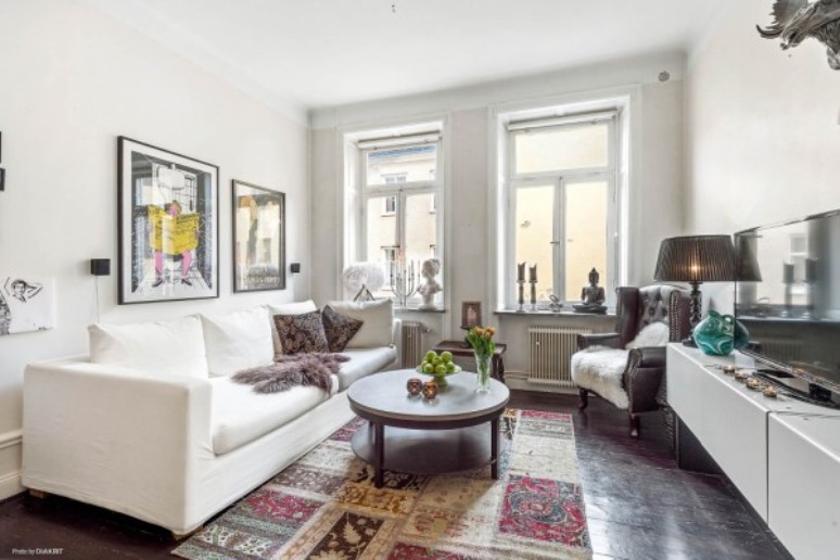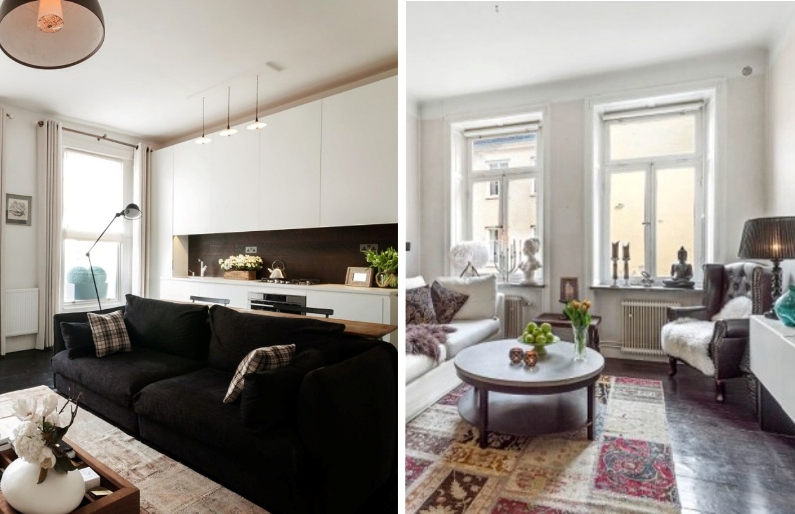 Второй дизайн небольшой квартиры сделан в столице Швеции - Стокгольме на площади в 35 квадратных метров. Такая площадь соответствует нашим отечественным однокомнатным квартирам старой планировки. При создании дизайна этого интерьера дизайнеры придерживались иной концепции, включив целый ряд эклектичных предметов, чтобы сформировать уютную домашнюю атмосферу.
