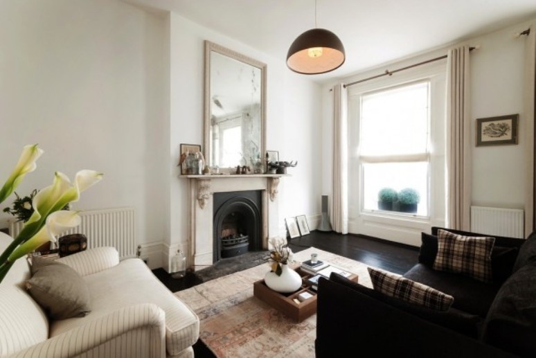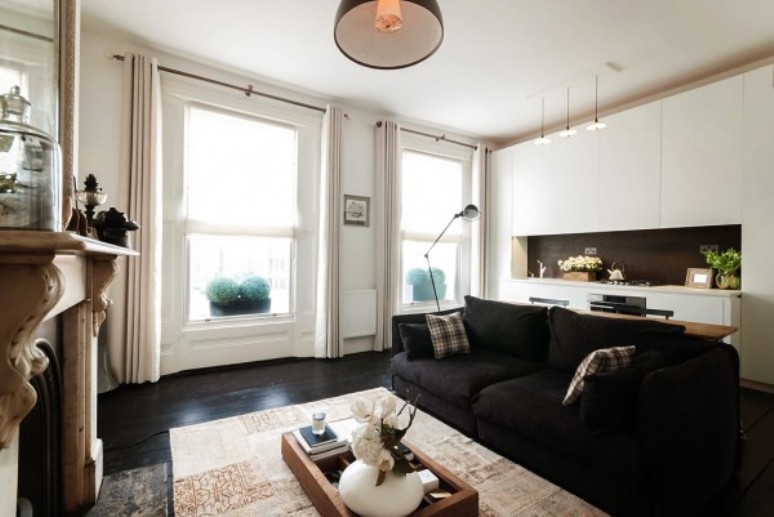 Первый дизайн выполнен в небольшой квартире в Лондоне, которая имеет площадь 48 квадратных метров. Два больших окна заполняют квартиру естественным светом.