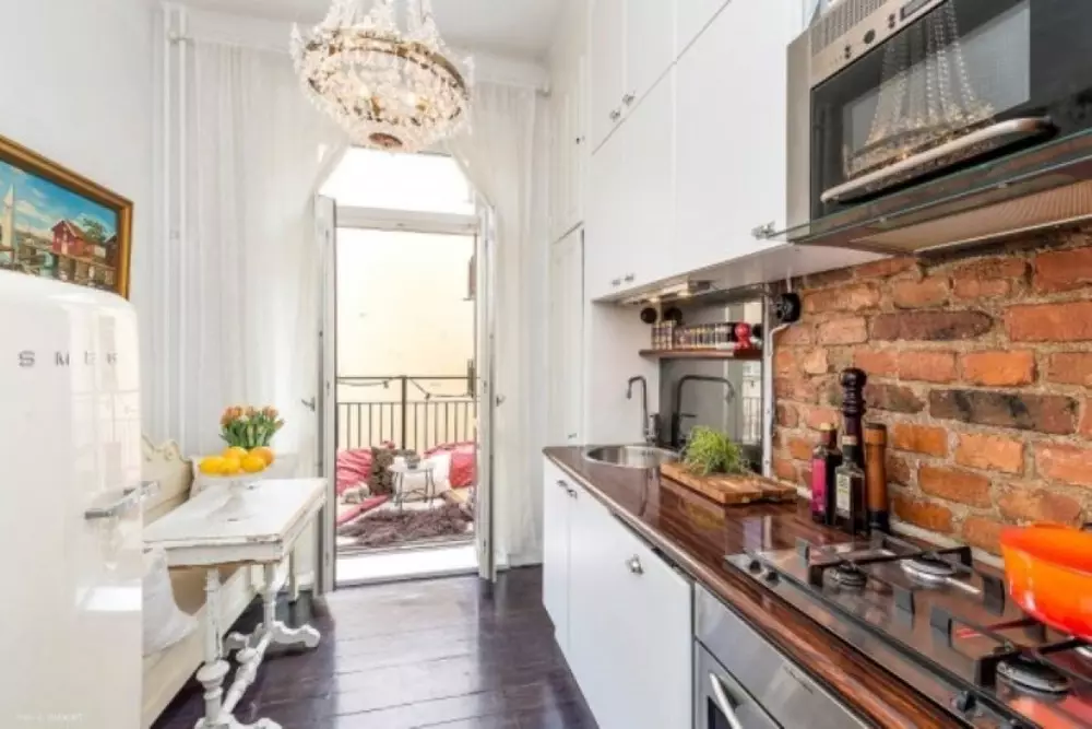 Уютно выполненная кухня является настоящей маленькой жемчужиной, ведущей на романтический балкон.