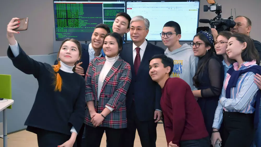 На видео девушка попросила Главу государства сделать совместное фото. После того как Касым-Жомарт Токаев сфотографировался с девушкой, он призвал ее сделать селфи и с другими молодыми людьми, в шутку сказав на английском: Don't be selfish, что в переводе означает "Не будь эгоистом".