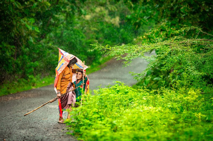 "Когда я шел домой, начался дождь. В этот момент я заметил мать и ее ребенка, которые пытались спрятаться от ливня под одеялом", - описал кадр автор.
