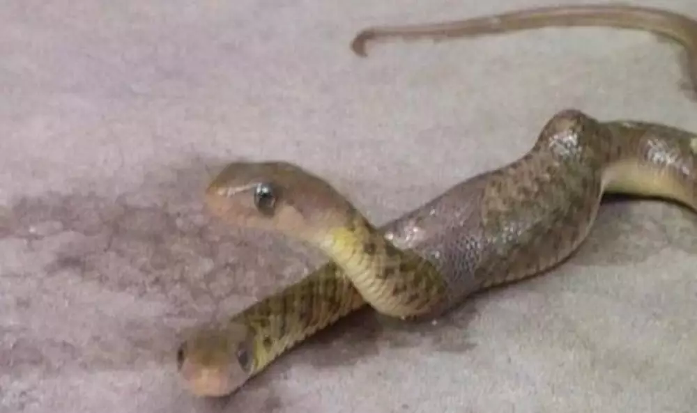Двуглавую змею нашли в Индии Двуглавая змея Фото с сайта express.co.uk