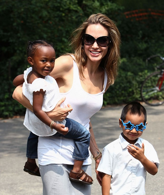 Анджелина Джоли с приемными детьми Захарой и Мэддоксом