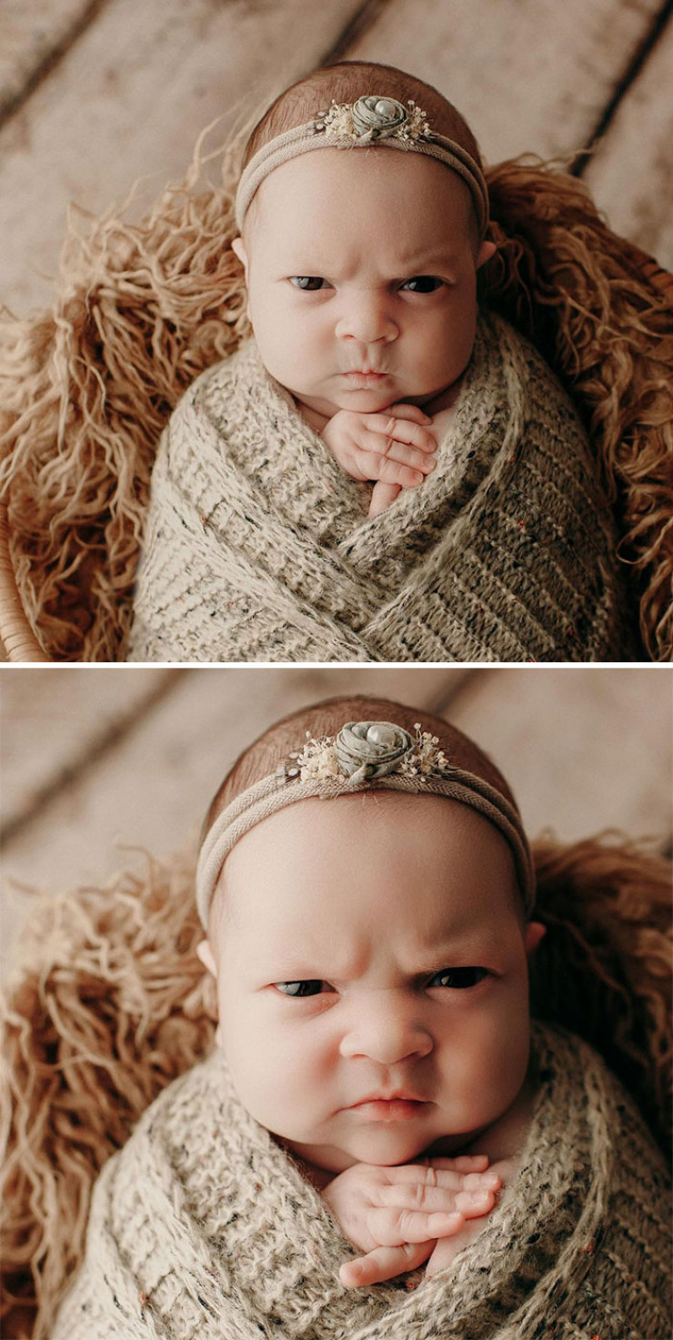 #5 "Моему сыну всего неделя, но морщины на лбу говорят о том, что он 80-летний дед, который засыпает в кресле за просмотром телевизора"