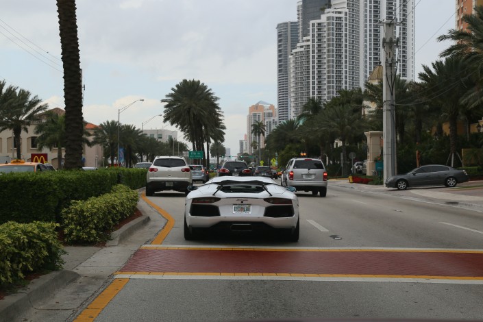 "Автопарк Майами - это ярмарка тщеславия, причем, которой снесло крышу. Столько Ferrari Spider я не наблюдал даже в Дубаи. На третий день ты уже не ломаешь шею при простреле мимо тебя очередной 458 Italia Spyder. Открытые спорткары тут так лаконично вписываются в атмосферу курортной роскоши, что кажутся абсолютно логичными в потоке. Хотя встречается и откровенный хлам".