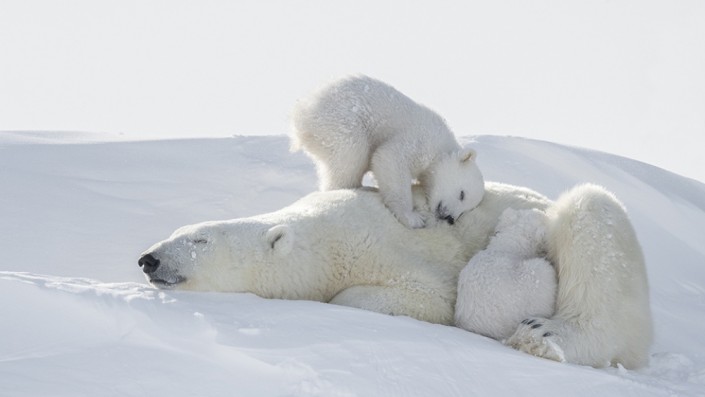 Фотограф дикой природы Дейзи Джилардини сумела запечатлеть в Канаде особое событие - момент, когда полярные медведицы впервые выходят на свет с четырехмесячными детенышами. Ради необычной фотоохоты она провела 13 суток в национальном парке Вапуск и прождала примерно 117 часов возле медвежьей берлоги при средней температуре около -50 °C.