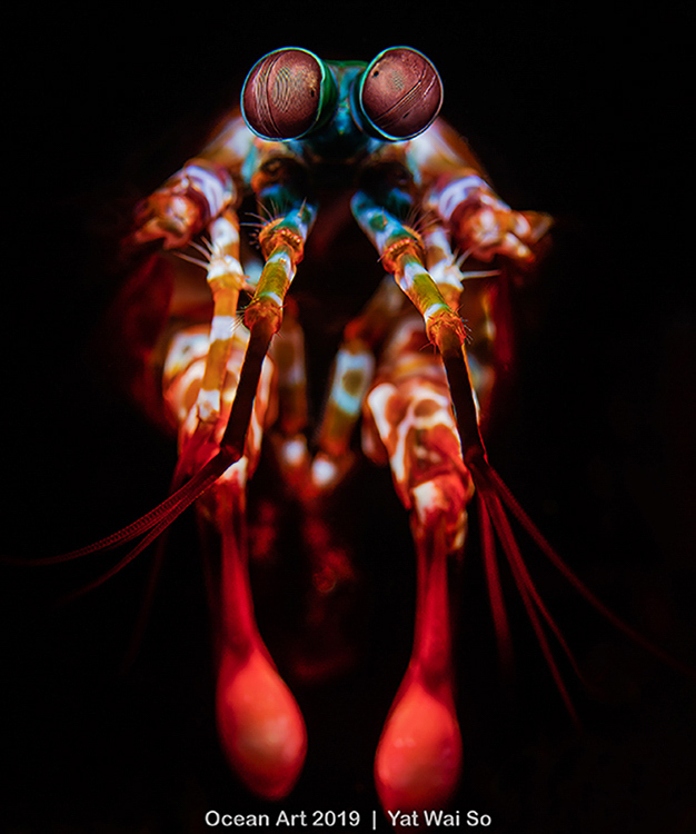 Похвальной грамоты удостоился филиппинец Ят Вай Со за фото роскошной павлиновой креветки-богомола под названием "Индеец". Креветка была замечена в Анилао на Филиппинах и обычно проживает в маленькой пещере. Помимо сильных когтей, богомол также известен своими глазами, которые считаются самой сложной зрительной системой в животном мире. Она содержит 16 фоторецепторов, которые могут видеть УФ, видимый свет и даже поляризованный свет.