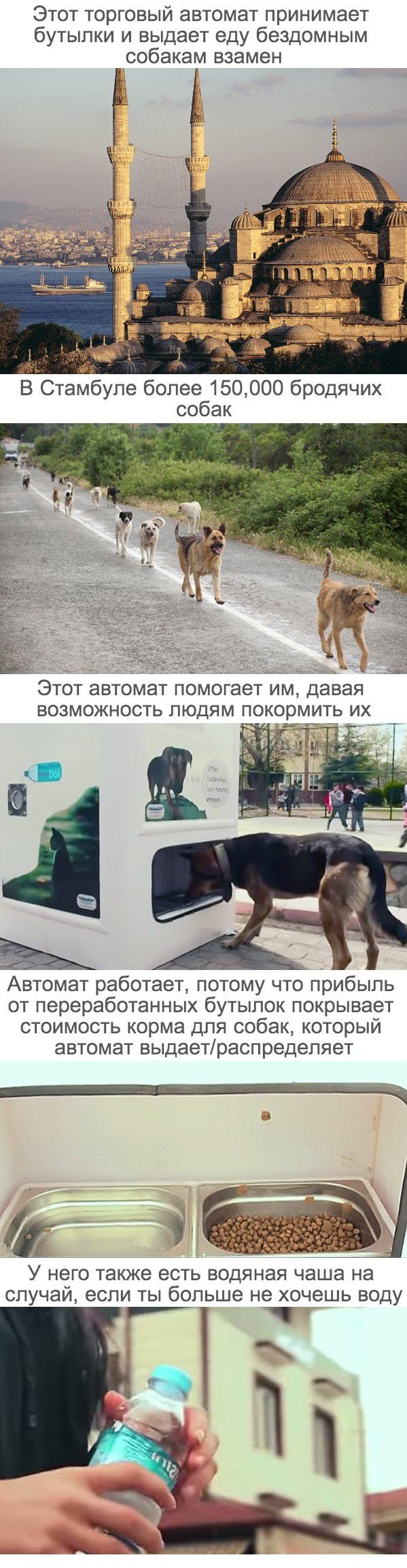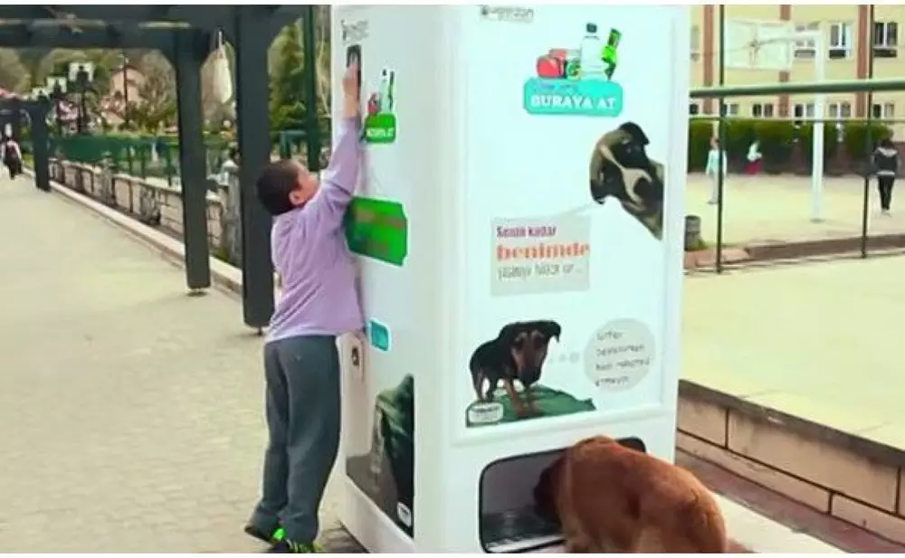 В Стамбуле появился интересный, можно сказать, странный автомат. Он позволяет убить сразу двух "зайцев" - выбросить мусор и покормить бездомных животных.