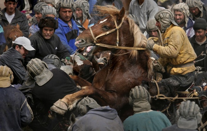 Снимок "Бузкаши" Нозим ждал в 2011 году. Он объясняет, что во время игры в бузкаши игроки, как правило, используют маленьких лошадей, они более маневренные, но тогда на поле появилась эта огромная лошадь, и с нее во время всей игры Нозим уже не спускал глаз. И когда игра достигла своей кульминации, начал снимать, решил снимать крупным планом, и получилось.