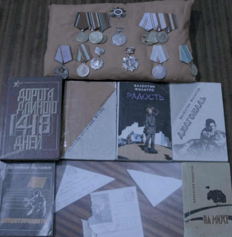 В материале, который нам прислали родные Валентина Филатова, действительно была содержательная информация о жизни и подвигах писателя. Валентин Филатов родился 18 июля 1924 года в Семипалатинске. Летом 1941 года он окончил 9 классов, а через несколько дней началась война. Он, как и все мальчишки того времени, рвался на фронт, но из-за возраста его не взяли. Тогда Филатов подал заявление во второе Рязанское артиллерийское училище, которое в годы войны было эвакуировано из Рязани в поселок Талгар. "Прошу зачислить меня кандидатом на 1942 год в артиллерийское военное училище. К этому времени я закончу 10 классов", - просил Филатов. И его зачислили. А после восьмимесячного обучения отправили в самую гущу событий. Так, в июле 1943 года он стал участником грандиозной битвы на Миус-фронте. В жаркой схватке с врагом Валентин был тяжело ранен.