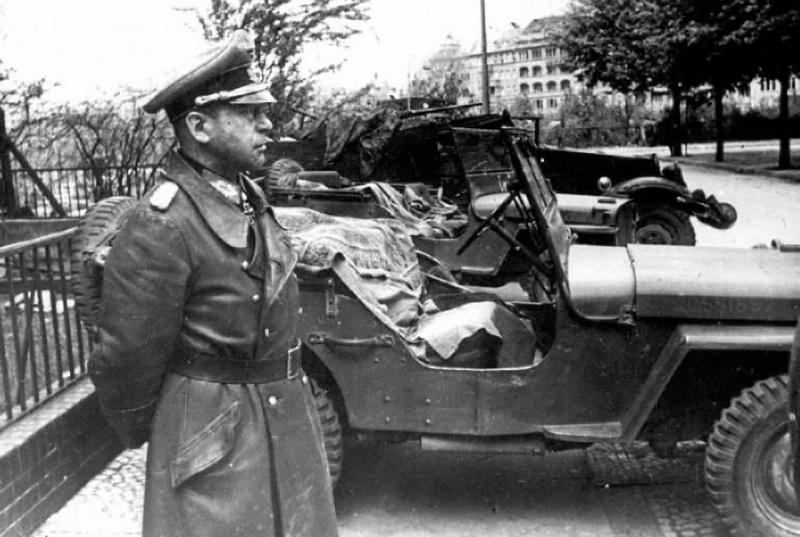 Фельдмаршал Вильгельм Кейтель едет на подписание Акта о безоговорочной капитуляции Германии.