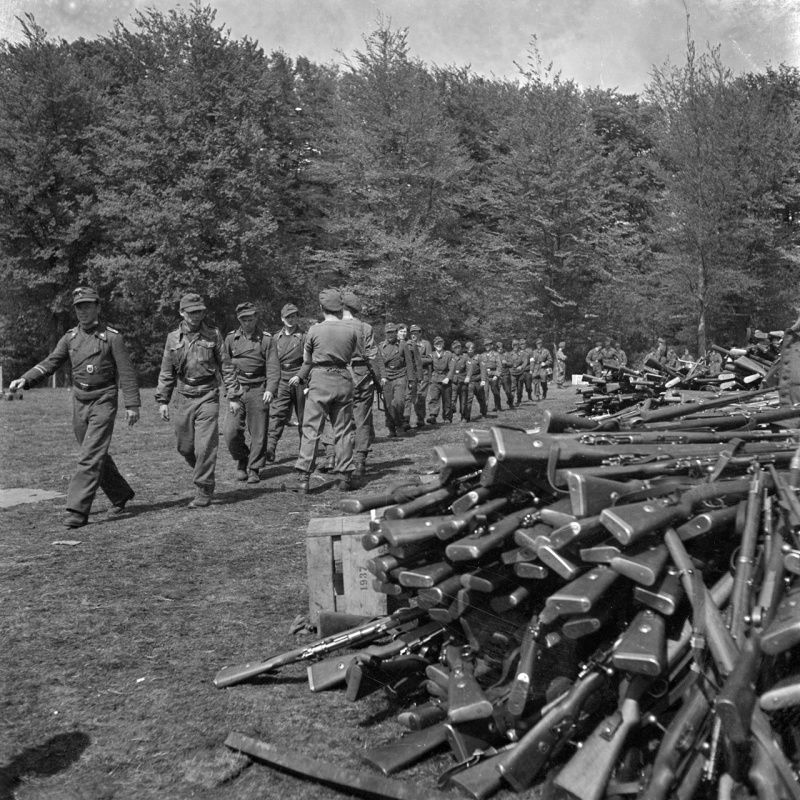 Англичане разоружают капитулирующих немцев в городе Зост.