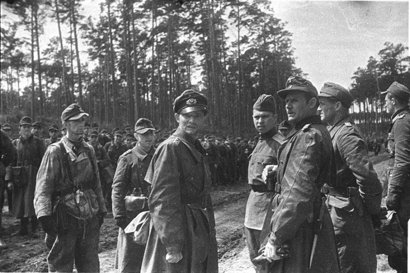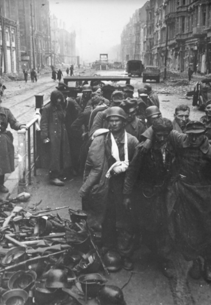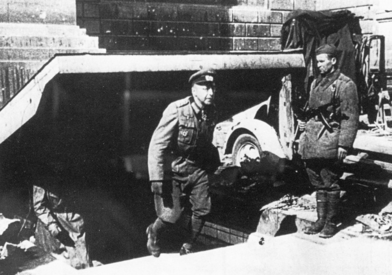 Генерал вермахта Г. Вейдлинг выходит из бункера во время капитуляции гарнизона Берлина.