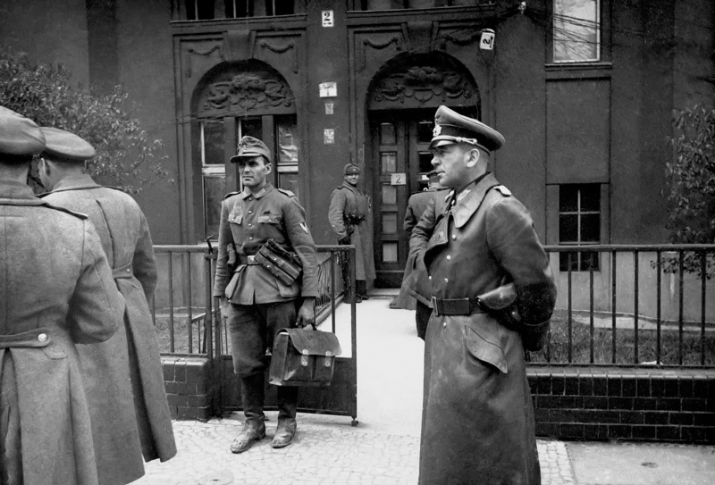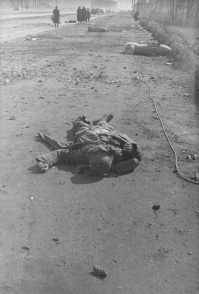 Пленные немецкие солдаты у входа в метро во время капитуляции в Берлине.