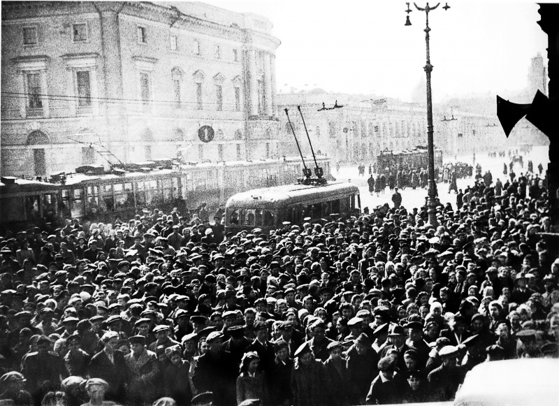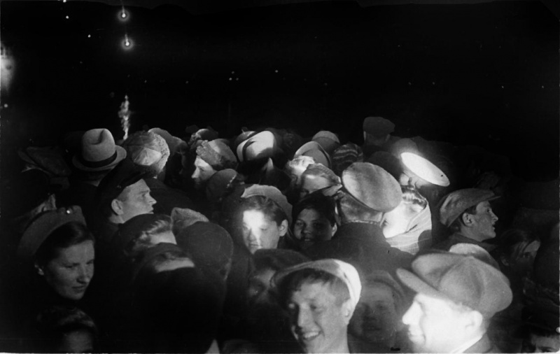 Ленинградцы на Невском проспекте слушают сообщение о Победе над Германией.
