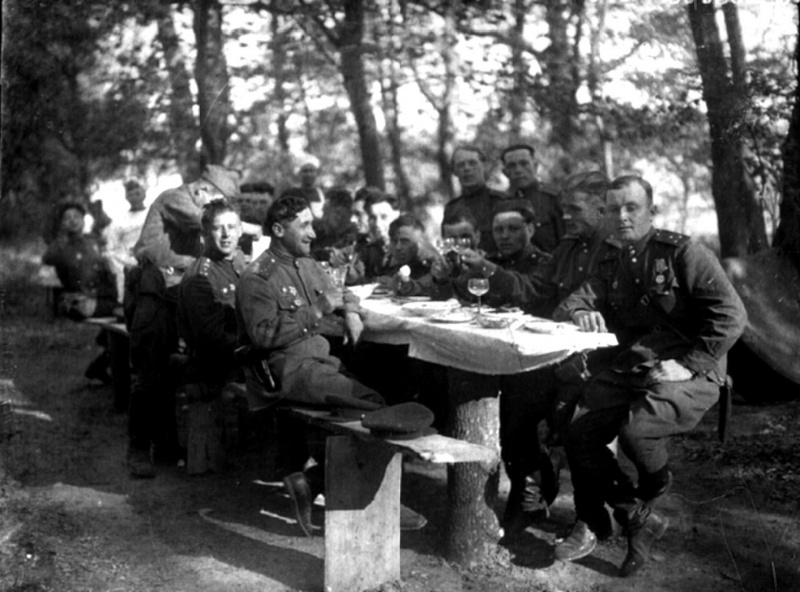 Праздничное застолье офицерского состава 143-го минометного полка 9 мая 1945 года. Германия.