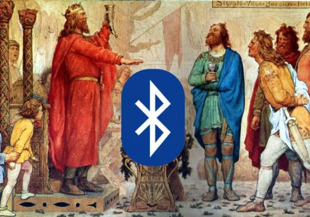 Технология Bluetooth (от англ. "синий зуб") предназначена для объединения нескольких устройств в одну сеть. А знак технологии является сочетанием двух скандинавских рун: "хагал" или "хагалаз" (Hagall) - аналог латинской H, и "беркана" (Berkana) - латинская B, что соответствует первым буквам имени Харальд Блатанд. Кстати, первые устройства, как нетрудно догадаться, были синего цвета и похожими на зуб.