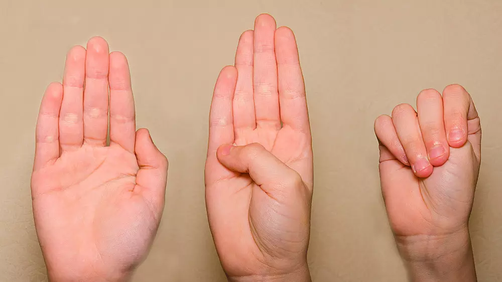 Жест включает в себя показ раскрытой ладони, последующее прижатие большого пальца к ладони и сжатие в кулак и сигнализирует "насилие в доме", "мне нужна помощь", "насилие в семье".