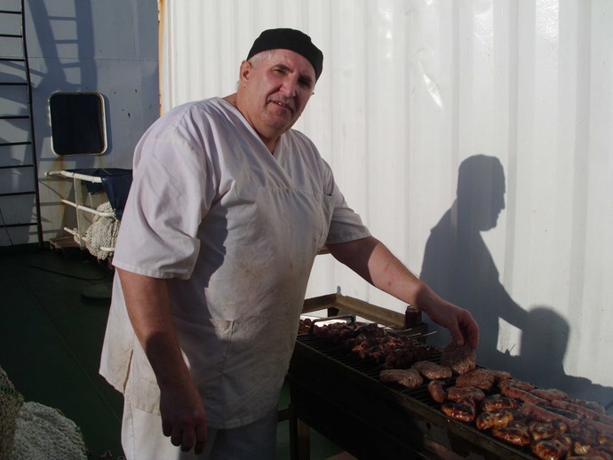 Один из традиционных праздников - пересечение экватора. Капитан объявляет: желающие посмотреть на буйки, разделяющие полушария, могут выйти. Конечно, буйков там нет. Зато для тех, кто пересекает его впервые, мы устраиваем "чистилище". Для этого делаем что-то вроде трубы из целлофана, которая изнутри обмазывается отработкой. Через этот тоннель и необходимо пройти новичкам. Кроме того, им нужно выпить литр морской воды.