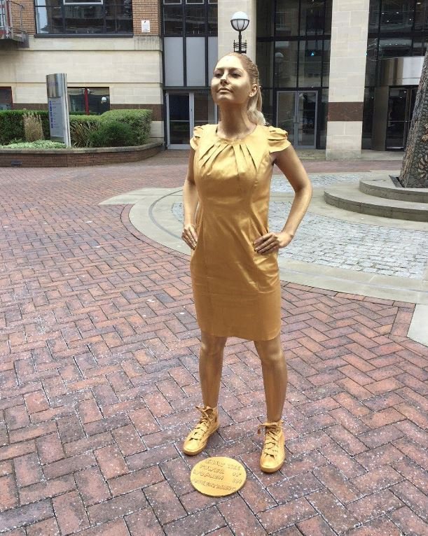 Эта информация сподвигла Джейд придумать, как заявить о себе, чтобы привлечь внимание потенциального работодателя. Она раскрасила себя краской золотого цвета, пришла к офису агентства McCann в Бристоле и приняла позу, имитирующую скульптуру в Нью-Йорке.