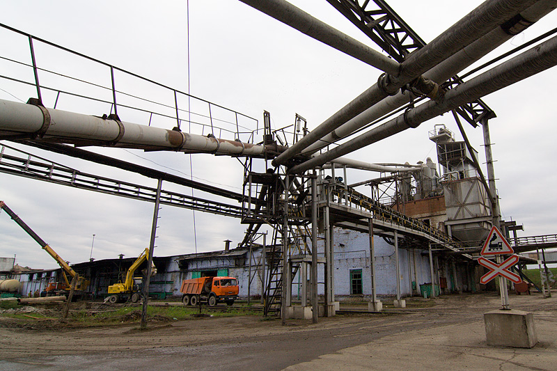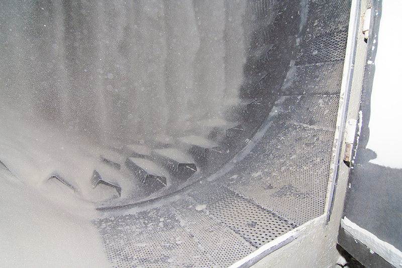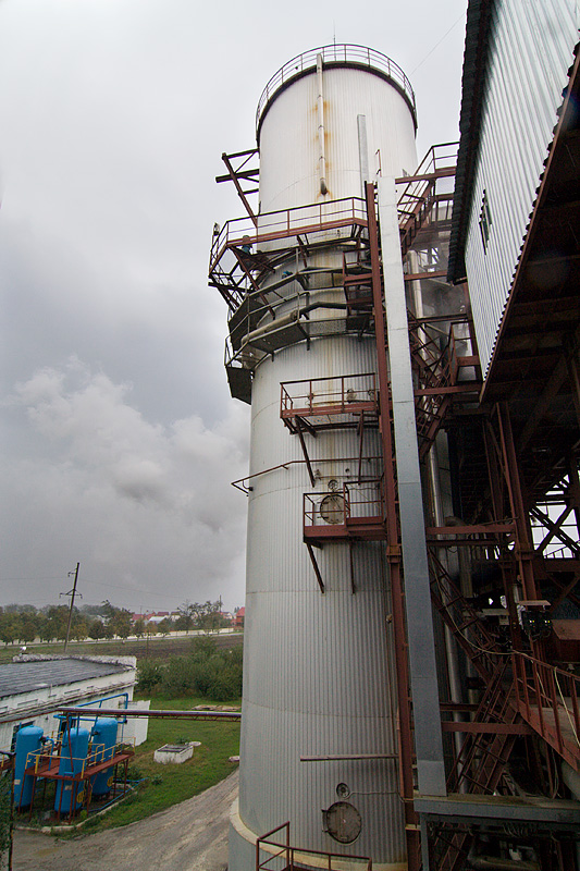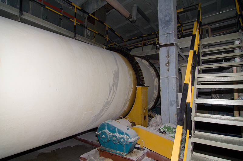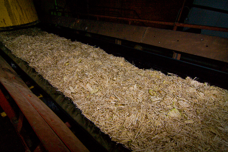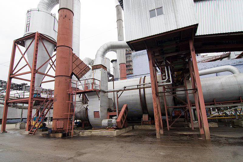 Свежеотжатый жом поступает в жомосушилку. Это огромный, непрерывно вращающийся барабан, внутри которого жом сушится в потоке раскаленного газа.
