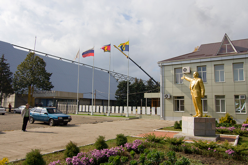 Собственно, начинается все с проходной, где гостей первым встречает позолоченный В.И. Ленин, как бы намекающий своим жестом: "Товаг'ищи! Сладкое там, за забог'ом!". И что главное, не обманывает. Сахарок действительно там, в товарных количествах.
