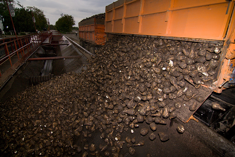 Понятно, что прежде чем использовать свеклу, нужно ее очистить от земли, ботвы, прилипших камней, песка и прочих примесей - в готовый продукт все это попасть не сможет в любом случае, но испортить оборудование - запросто. Для этого, свекла, следуя по тракту подачи на производство, проходит через различные соломоботволовушки, камнеловушки, песколовушки. Для окончательной очистки свеклы от загрязнений корнеплоды проходят через свекломойку.
