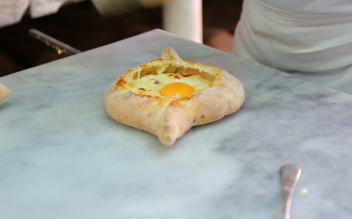 7. Наш хачапури называется очищенный. Это когда с полупропеченного хачапури вилкой снимается тесто под бортами. Но это на любителя.