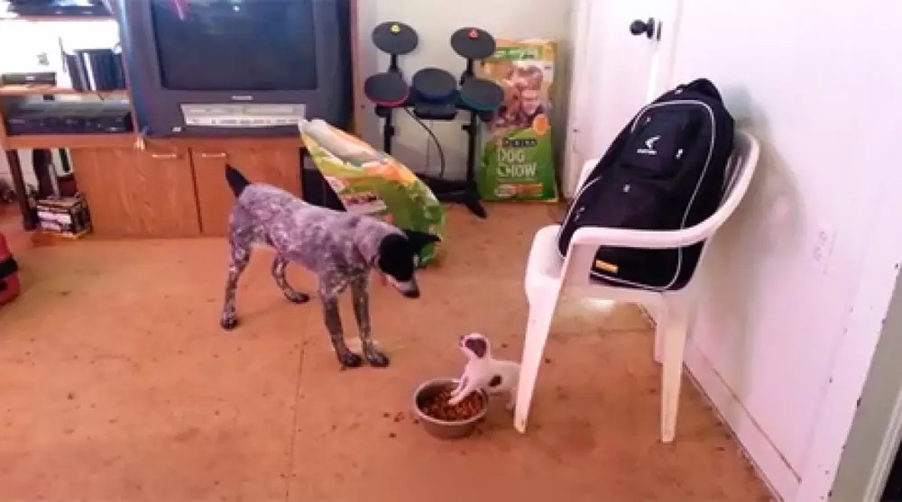 Как щенок у пса миску с едой отвоевал Кадр видео на youtube.com